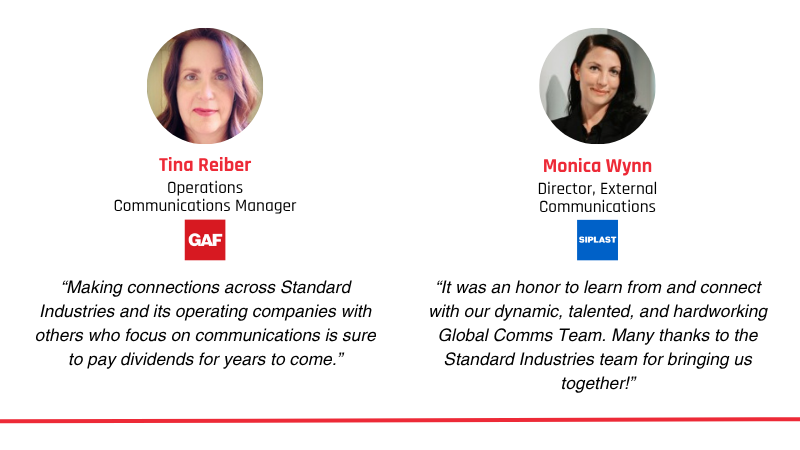 In June, Standard Industries held its first-ever Global Communications Summit, convening internal and external communicators from Standard, GAF, GAF Energy, SGI, Siplast, BMI,and W. R. Grace tofoster connection and collaboration.